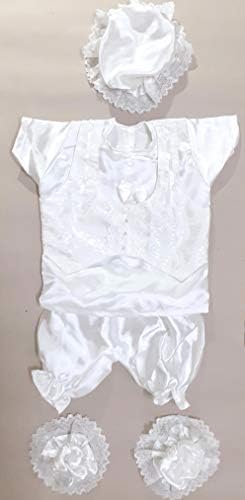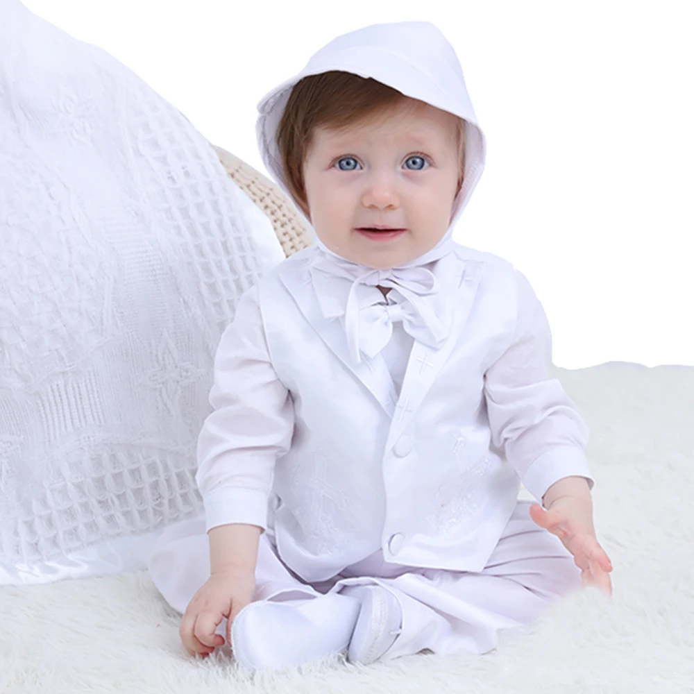 Baby Boy Size 0 12m White Silk Christening Baptism Outfit Set With Hat Bodysuits Hoodies Active